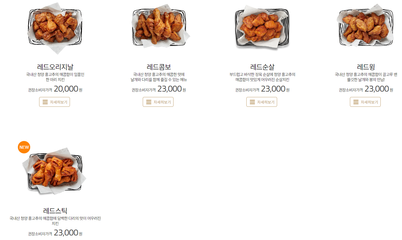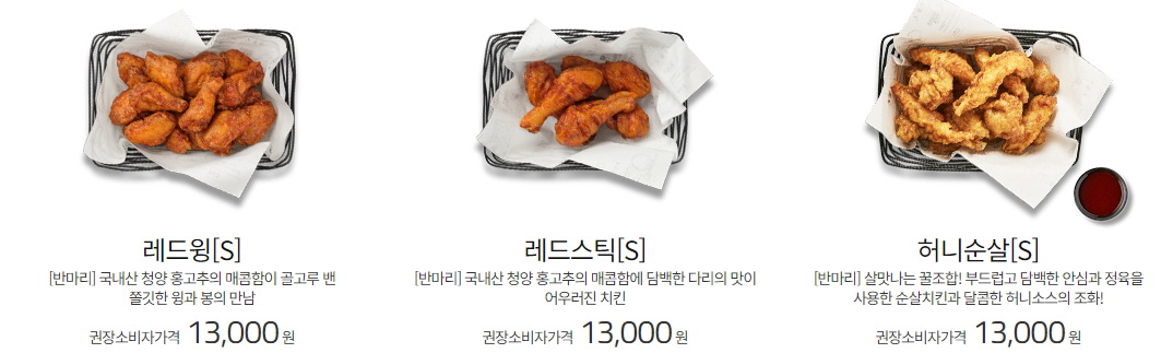 | 레드순살 | 381 | 700 | 23,000 | 웨지감자 / 허니순살 |