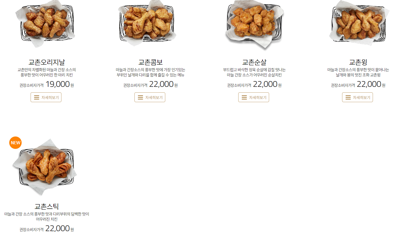 교촌치킨도 좋아하시는 분들이 많으실텐데요. 각 메뉴들이 어떠한 것들이 있는지 교촌치킨의 모든 메뉴정보를 알아보도록 하겠습니다.